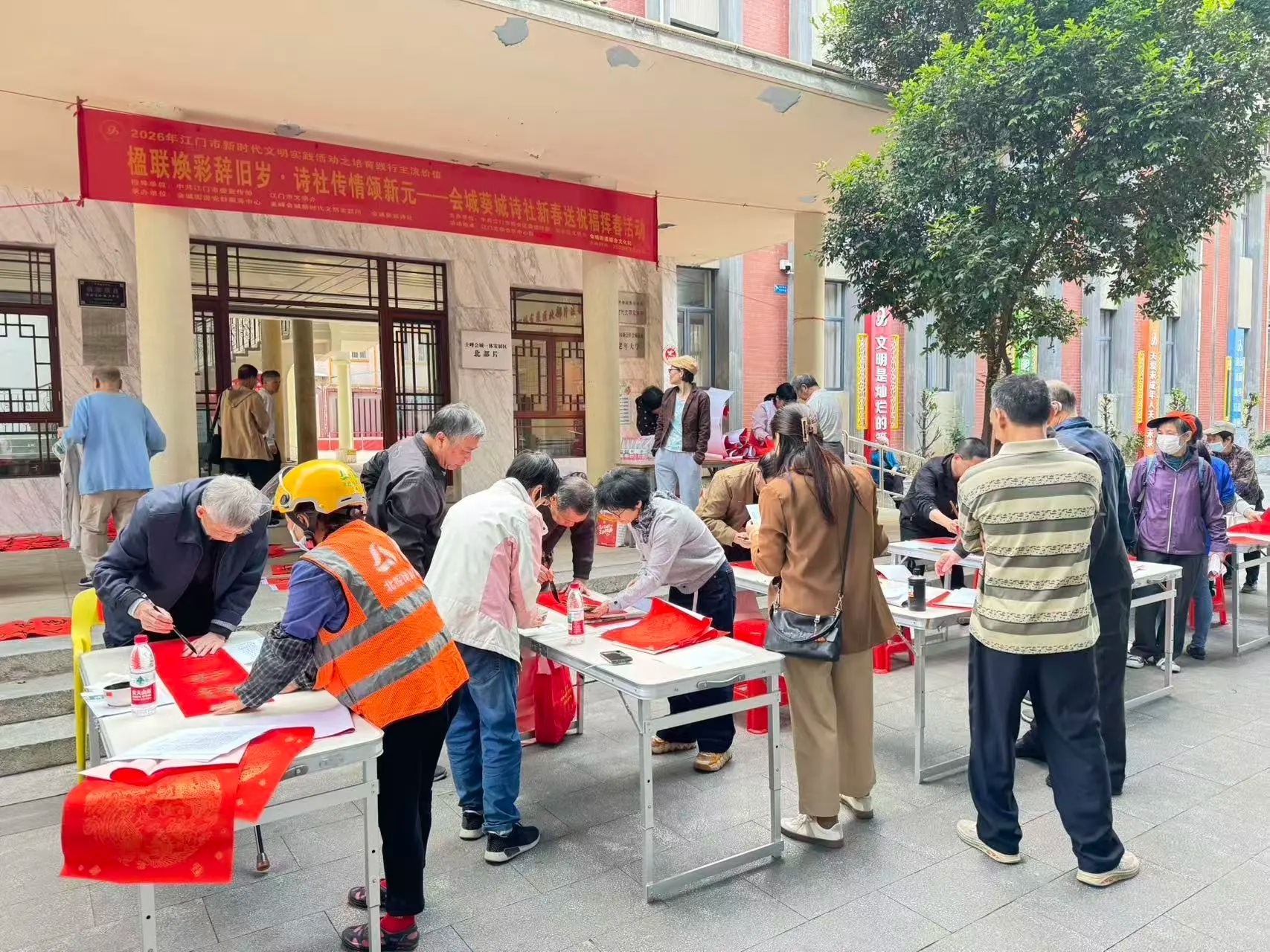 新会区会城街道党群服务中心开展送春联活动。 江门市委组织部 供图